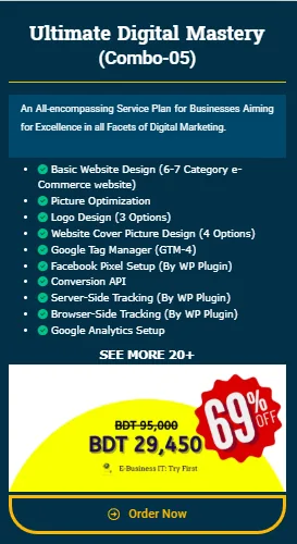 আপনার ব্যবসাকে ডিজিটাল দুনিয়ায় শীর্ষ পর্যায়ে নিয়ে যেতে Ultimate Digital Mastery (Combo-05) হলো একটি All-in-One Digital Service Plan।